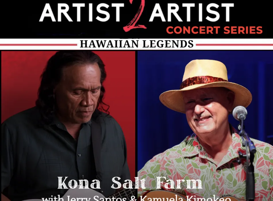 Kick off the new season of Artist 2 Artist with an unforgettable evening featuring Jerry Santos, joined by Kamuela Kimokeo, and hosted by Henry Kapono. Henry and Jerry share deep musical roots dating back to the 1970s, when Jerry rose to prominence as one half of Olomana alongside the era-defining sounds of C&K and other island contemporaries. Reuniting on stage, they bring decades of music, stories, and friendship into a night that feels both nostalgic and alive in the moment.Joining Jerry is master slack key guitarist and scholar Kamuela Kimokeo, whose expressive playing and deep cultural knowledge add richness and depth to the evening. Together, the music becomes a conversation - between voice, guitar, and legacy. Set in the unique setting of Kona Salt Farm, this special night offers more than a performance, it’s a shared experience rooted in tradition, storytelling, and aloha.