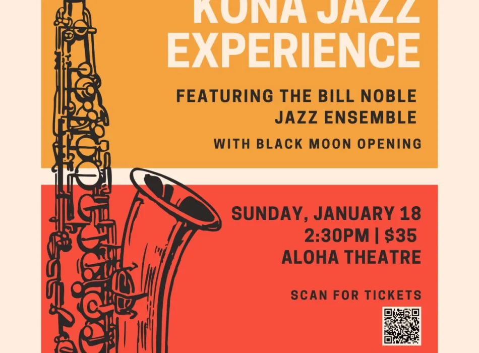 The Kona Jazz Experience, a benefit concert for the Aloha Theatre will take place on Sunday, January 18, 2026 at 2:30. The concert will feature Bill Noble Jazz Ensemble: an 8 piece band of horns, rhythm section and vocals, under the inspiring and exciting leadership of Bill Noble. Born and raised in Kohala, Bill is a freelance musician whose career includes appearances with The Temptations, Ray Charles, Gladys Knight, Fifth Dimensions, regular performances at our world class resorts, and many notable private parties, including for two former Presidents.
