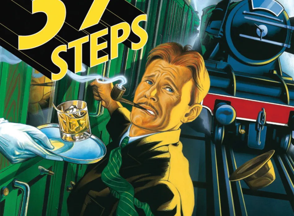 The 39 Steps is a parody play adapted from the 1935 film by Alfred Hitchcock, which is itself adapted from the 1915 novel by John Buchan. The original concept and production of a four-actor version of the story was written by Simon Corble and Nobby Dimon, and premiered in 1996. Patrick Barlow rewrote this adaptation in 2005. The play's concept calls for the entirety of the 1935 adventure film The 39 Steps to be performed with a cast of only four. One actor plays the hero, Richard Hannay; an actress (or sometimes actor) plays the three women with whom he has romantic entanglements; and two other actors play every other character in the show, each occasionally playing multiple characters at once. Thus the film's serious spy story is given a comedic twist.