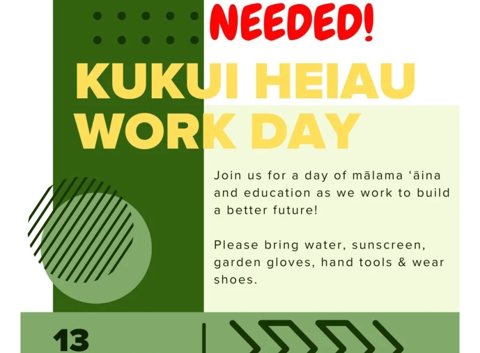 Join us for a day of mālama ʻāina and reconnecting with Wailua's history at the Kukui Heiau Work Day on Saturday, December 13, 2025, from 8:30 AM to 2:00 PM at 410 Papaloa Road.