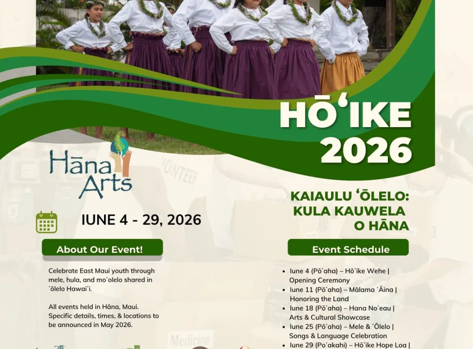 Part of our Kula Kauwela o Hāna summer program, these weekly Hōʻike celebrate East Maui youth as they share mele, hula, and moʻolelo learned through Hawaiian language immersion. Each event honors ʻāina, culture, and the next generation of ʻōlelo Hawaiʻi speakers.