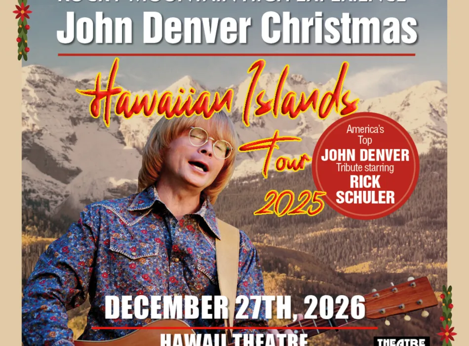 Celebrate the warmth and nostalgia of the holiday season with A John Denver Christmas - a heartwarming tribute to one of America’s most beloved singer-songwriters. Featuring timeless classics like “Take Me Home, Country Roads,” “Rocky Mountain High,” and “Annie’s Song,” along with holiday favorites from John Denver’s cherished Christmas albums, this concert captures the spirit of joy, peace, and togetherness that defined Denver’s music. Join us for an evening filled with heartfelt songs, storytelling, and the timeless message of love and home this holiday season at the Hawaii Theatre.