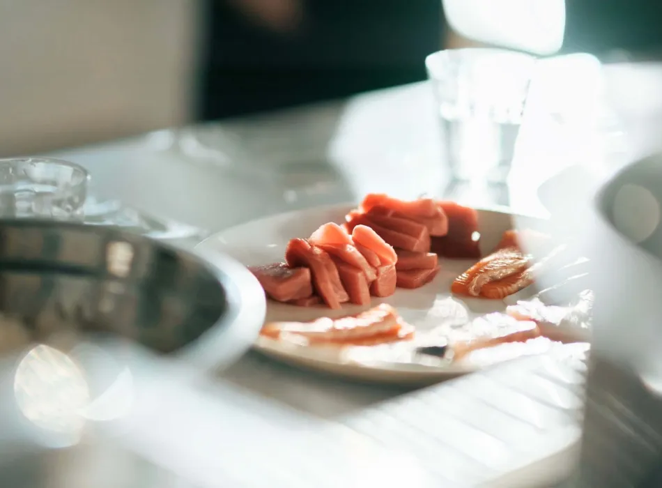 Alongside your sushi dinner will be 2 glasses of sake.