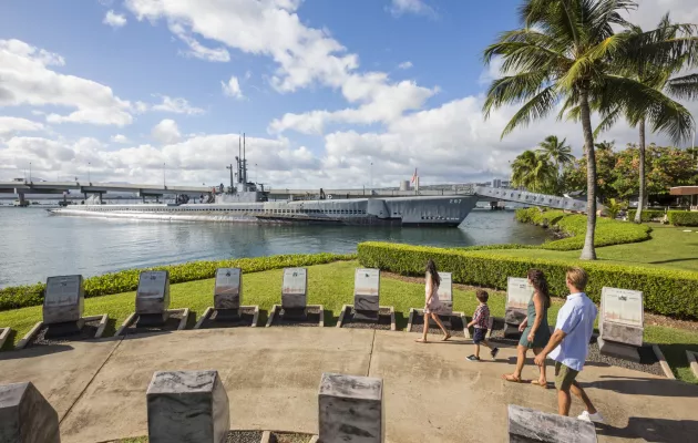 The most important landmark in Central Oʻahu sits to the south in historic Pearl Harbor, the largest natural harbor in Hawaiʻi. This active naval base is home to five historic sites that you can visit. The Pearl Harbor Visitor Center is a free attraction at the Pearl Harbor National Memorial, a unit of the US National Park Service (NPS). The Pearl Harbor National Memorial includes the USS Arizona Memorial, USS Oklahoma Memorial, and USS Utah Memorial. The visitor center is also the gateway to the Pearl Harbor Historic Sites: Battleship Missouri Memorial, Pacific Fleet Submarine Museum, and the Pearl Harbor Aviation Museum. These special monuments commemorate the historic events that changed history during World War II.