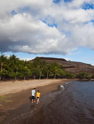 コナ国際空港から車で北に20分程のコハラ・コースト。ここは最高級リゾート・エリアで、超一流ホテルやレストラン、ゴルフ・コースが揃います。一方、自然考古学保護地区や神殿を復元した国立歴史公園、人気のビーチもあり、家族で楽しむのに最高の場所です。