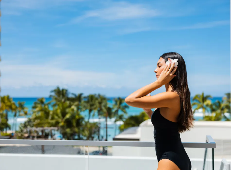A new see-and-be-seen destination pool deck on the fifth floor overlooking Waikīkī Beach features a SALTWATER INFINITY POOL along with chic social and relaxation spaces. Stepping stones lead to five PRIVATE CABANAS perched atop a reflecting pool.