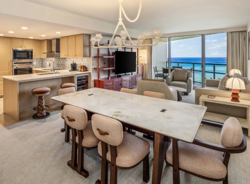 Ka Laʻi Waikiki Beach is the perfect respite for both couples and large, multi-generational families, with luxurious accommodations that sleep up to 8 guests. Enjoy the best of both worlds with unparalleled five-star service, as well as spacious guest rooms and suites that feature fully equipped gourmet kitchenettes and kitchens, in-suite washers and dryers, marble bathrooms, 24-hour room service and signature Trump Attaché program.