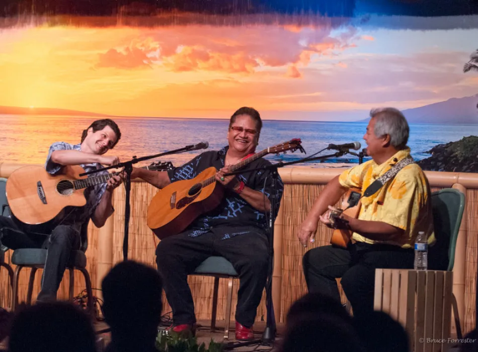 Presented by four-time Grammy Award slack key guitarist George Kahumoku Jr., the show features masterful guitar playing, heartfelt storytelling, and the soothing rhythms of Hawai‘i. Hosting the evening is George’s talented protégé, Shem Kahawai‘i, with the elegant Wainani Kealoha performing hula that brings the music to life. Each show features a star of slack key music—renowned, award-winning special guests who embody the spirit of the Hawaiian musical tradition.