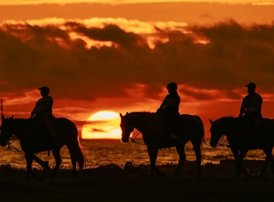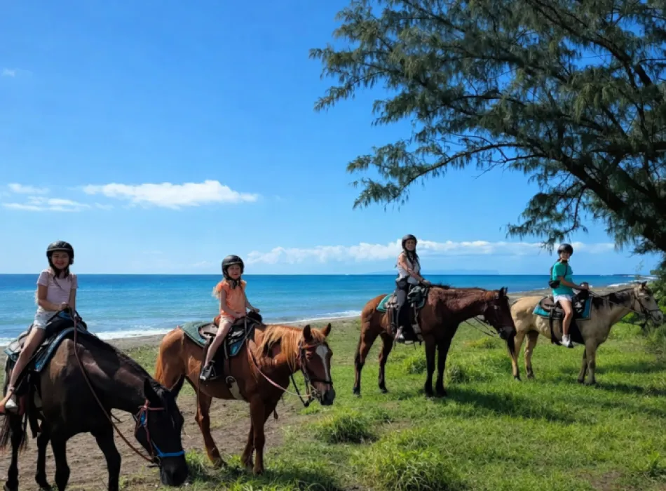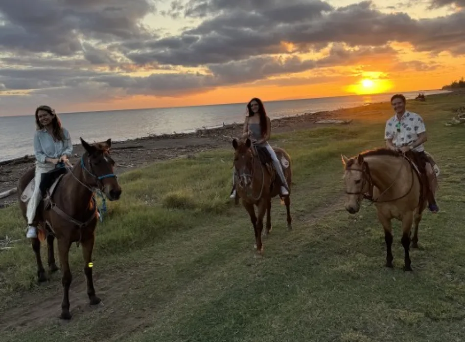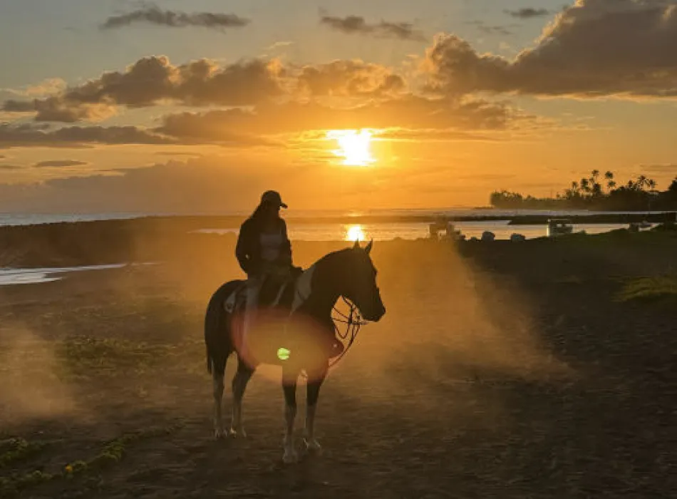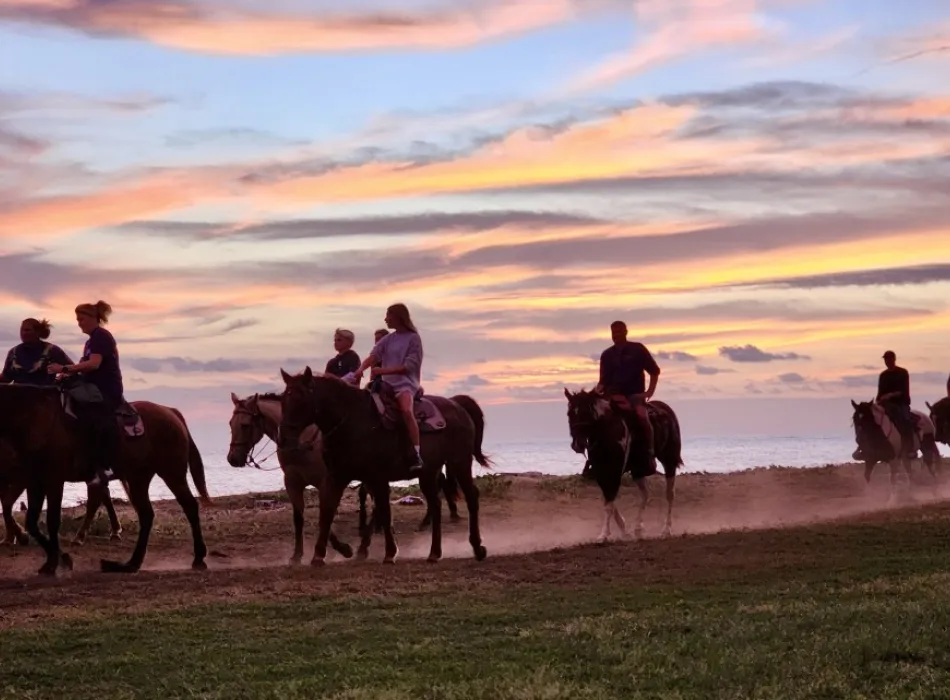 Our tours provide a unique opportunity to experience a quieter side of the island, where open landscapes, fresh ocean air, and the rhythm of the horses create a truly memorable experience. While our trails follow the coastline just inland, guests enjoy breathtaking views of the Pacific throughout the ride.